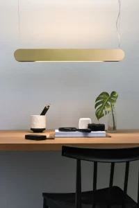 Boas opções disponíveis no mercado são luminárias lineares com lâmpadas LED tubulares ou sistemas com LED integrado, que podem ser embutidas no forro, podem ficar sobrepostas à laje ou ainda pendentes sobre a mesa.